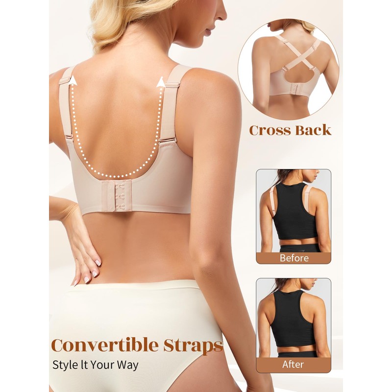 - Seamless & Smooth Fit – Made from a premium blend of 55% Nylon + 45% Spandex, these bras are soft, breathable, and flexible for a perfect fit. The seamless design disappears under clothes, leaving you with a smooth, invisible silhouette.