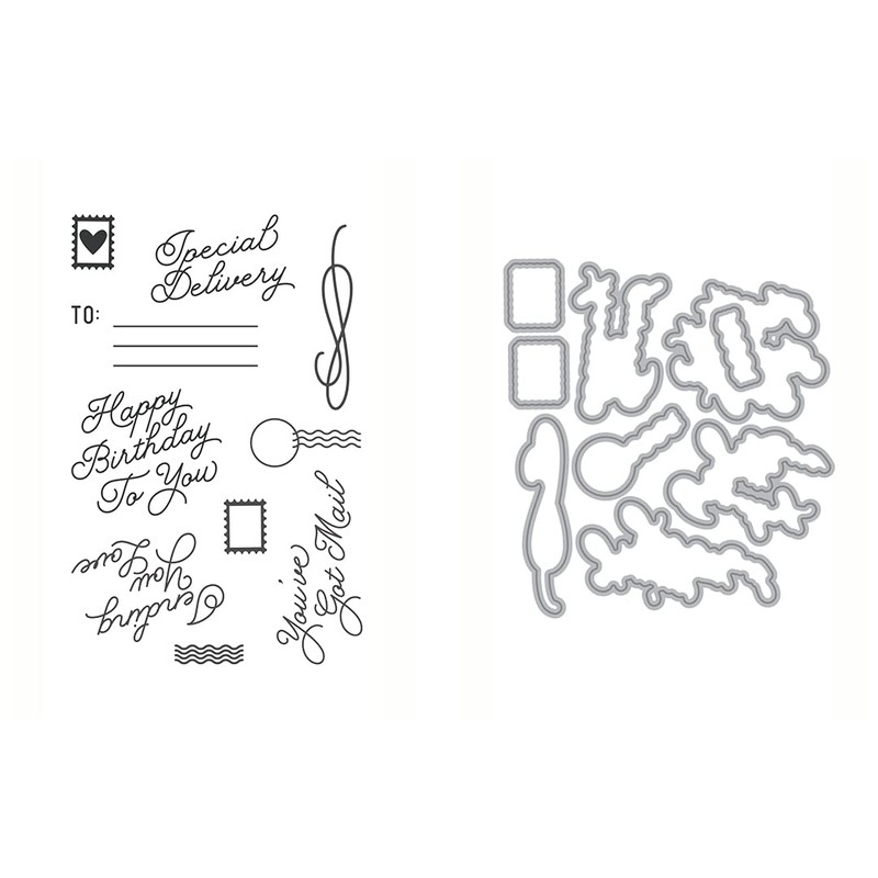 - This 10 piece - 4x6 photopolymer stamp set has a 9 piece coordinating die set! Sentiments include: Happy Birthday to You, Special Delivery, Sending You Love, You've Got Mail