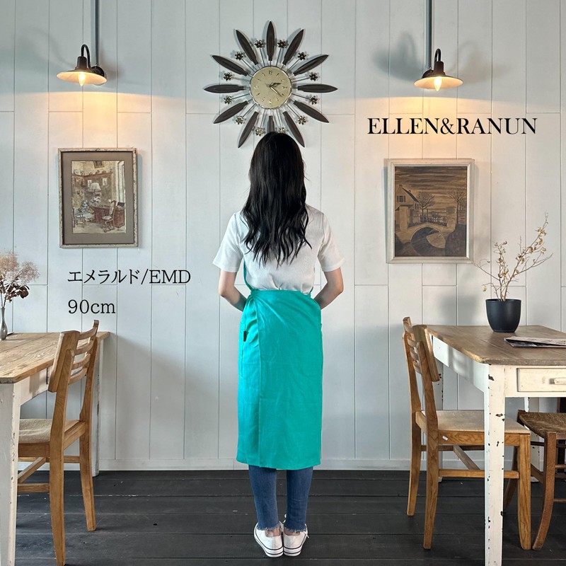 ELLEN&RANUN Linen Apron, 100% Linen (Linen), Cafe Style, Long Apron, Hidden Buttocks, Pockets, Neck Hanging, Simple, Stylish, Gardening, Kitchen, Salon, Nursery School, Unisex, Emerald/EMD
