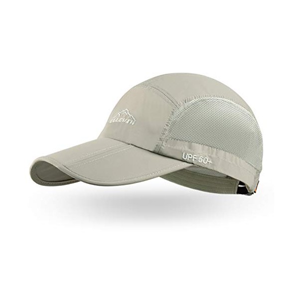 ELLEWIN Men's Baseball Cap UPF50 Hat W/Foldable Long Large Bill,One Size,Khaki