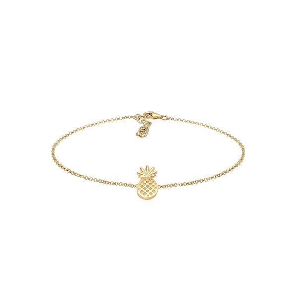 Elli Anklet Women's Anklet Pineapple Tropical in 925 Sterling Silver Gold-Plated, Facet cut, No Gemstone