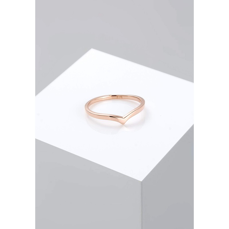 Elli Geo Basic 0602280516 Women's Ring V Ring V Ring Stacking Geo Basic Timeless Trend Rose Gold-Plated Silver 925, 52, Facet cut, No Gemstone