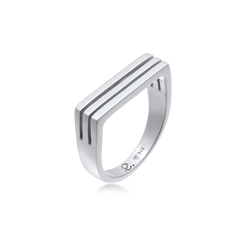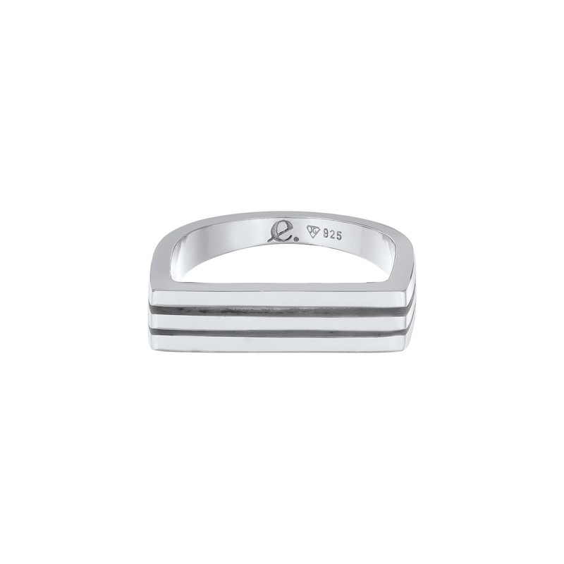 Elli Premium Ring Women's Seal Rectangular Grooves in 925 Sterling Silver Rhodium-Plated, 64, Sterling Silver, None