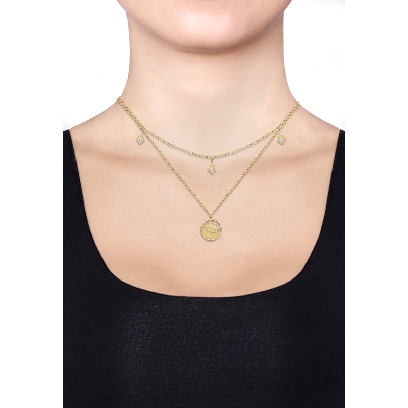 - Design: layer women's necklace with jewellery bag, ideal for everyday use or elegantly chic. Women's layered necklace with crystal stars and sun moon pendant