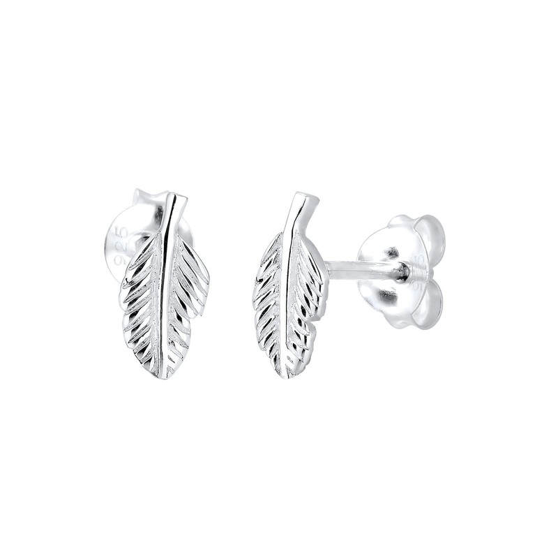 Elli Women's Silver 925 Sterling Silver Xilion Cut Feather Stud Earrings