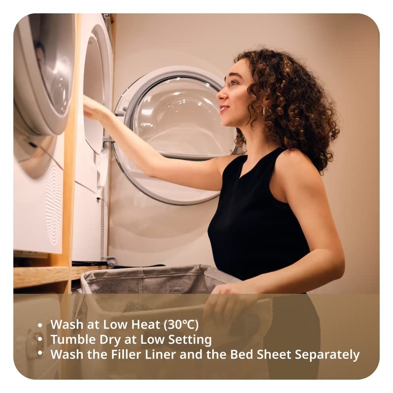 - Washing Instructions for Dog Bed: Please wash the cover and inner liner separately. inner liner - washing machine 30 degrees/drying on the low setting. cover - washing machine 30 degrees/drying on low setting