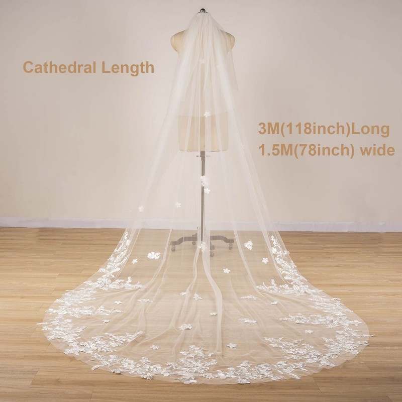 - La longitud se puede hacer a medida, si quieres que el velo de boda sea personalizado, ponte en contacto con el vendedor antes de realizar el pedido.