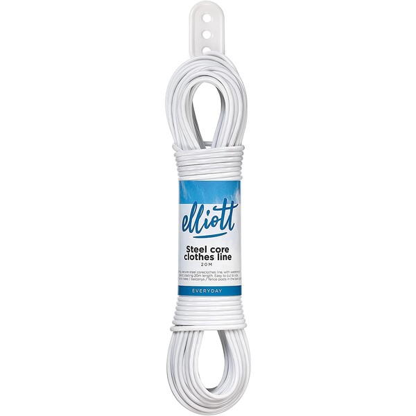 Elliott Steel Core Clothes Line, 20 Meters, White, Extra Stong, Laundry Essential