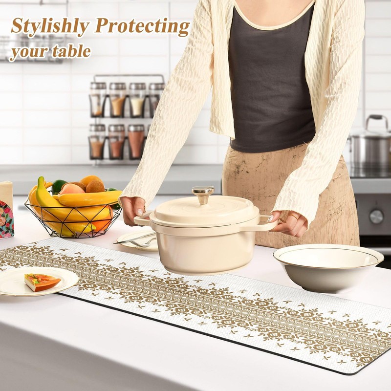 - Heat Resistance: Unlike traditional table runner, our trivet table runner is heat resistant and can perfectly handle heat up to 230°F, effectively protecting quartz countertop, marble or wooden dining tables from heat burn