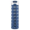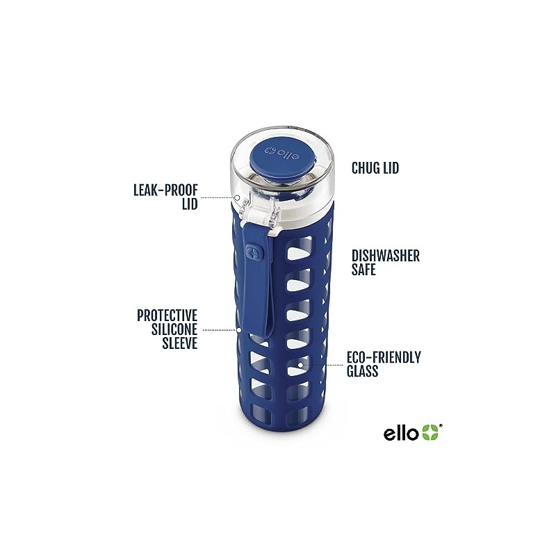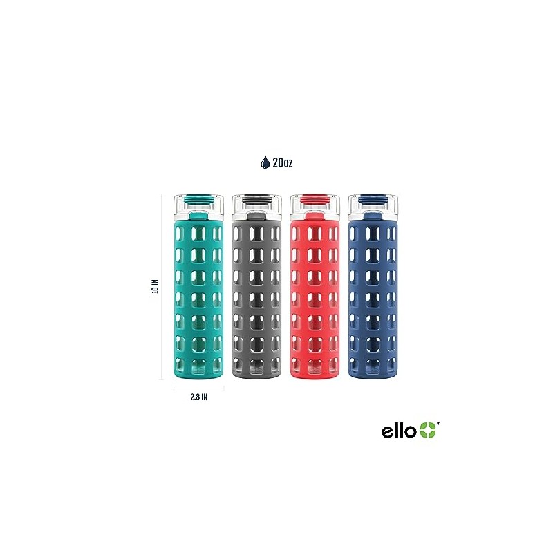 Ello Ello Syndicate 20oz Reusable Glass Water Bottle with One-Touch Leak Proof Flip Lid and Protective Non-Slip Silicone Sleeve and Carry Loop for Coffee, Tea and Water, BPA-free Dishwasher Safe, Bold Blue