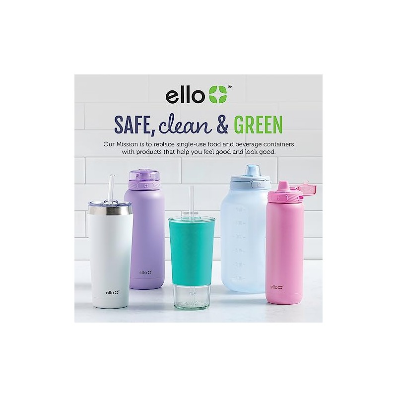The Ello Syndicate Glass Water Bottle is made of clean-tasting glass that won't leach, stain or smell. Say goodbye to plastic and enjoy the pure pleasure of drinking directly from glass. Syndicate's convenient one-touch flip lid is designed to be leakproof and easy to drink from. The bottle is further enhanced by an FDA food-grade silicone sleeve, ensuring a secure, slip-free grip while safeguarding the glass. With its dishwasher-safe feature, the Syndicate reusable glass water bottle is your ideal companion for on-the-go hydration, whether it's during school, work, or a gym session.