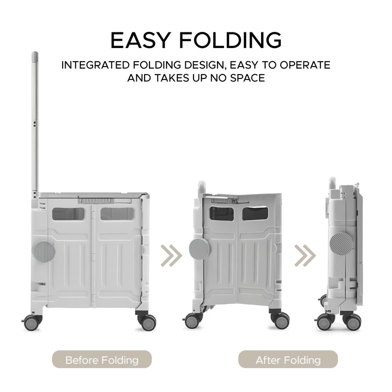 Elly Utility Cart Foldable with 4 Smooth-Rotate Wheels, Telescopic Handle & Snap-Closure Lid, Heavy-Duty Design for Daily Carrying Needs, Rolling Crate Perfect for Shopping, Office, Travel and Storage