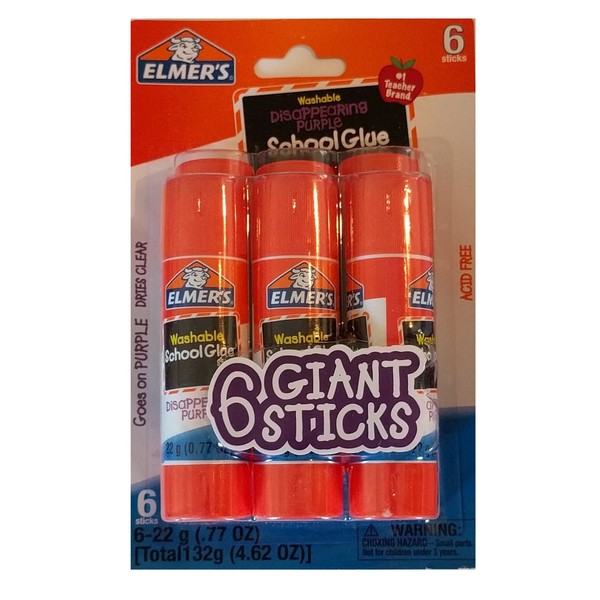 Elmer's Washable Disappearing Purple School Glue, 6 Giant Sticks (Pack of 1)