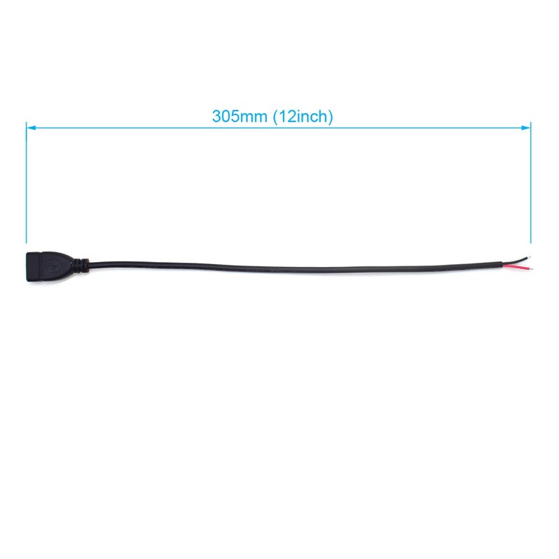 - 【Product Detail】USB female bare cable pigtail open end extension cables 20AWG;Length 1Ft(0.3M);Voltage: 5-12V,maximum current:5A;red positive pole,Black negative pole.can not used for data transfer