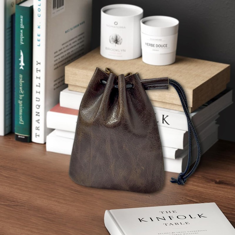 Leather drawstring bag, the perfect combination of premium materials and thoughtful design. Crafted from coconut brown genuine cowhide leather, coin pouch feels comfortable and exudes vintage charm.