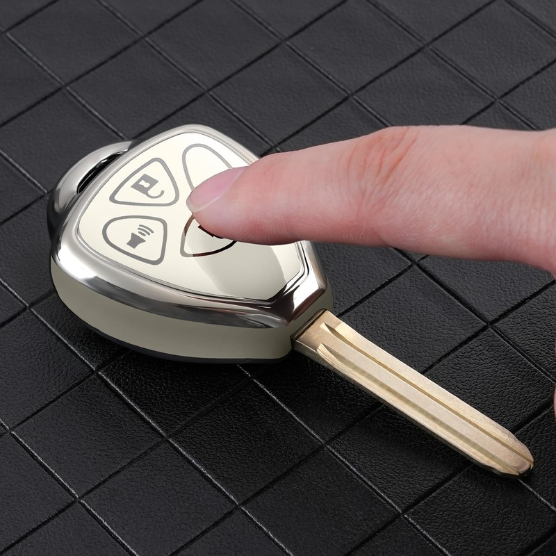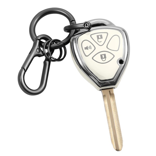 ELOHEI for Toyota Key Fob Cover with Keychain, Key Fob Case for 2010-2016 Toyota Prius RAV4 Highlander Tacoma 4Runner Yaris Premium Soft TPU 360 Degree Full Protection (Silver Edge White, 3 Buttons)