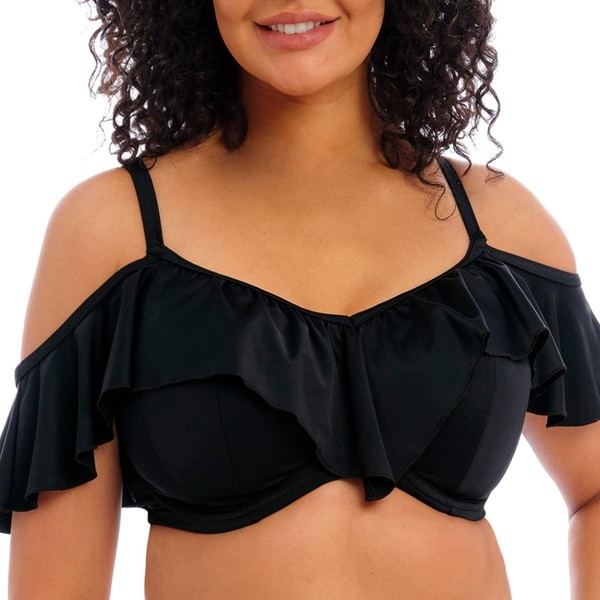 Elomi Plus Size Plain Sailing Ruffle Underwire Bikini Top 34G, Black