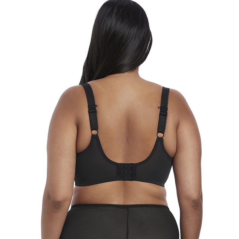Elomi Women's Charley Stretch Plunge Bra: Stretch Lace & Mesh, Racerback Option. Low Plunge UK Sizes D-JJ, US Sizes D-N, Black, 40G