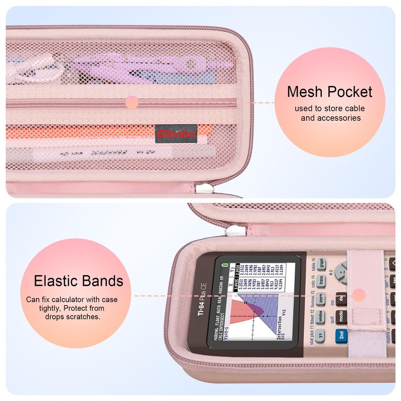 Elonbo Carrying Case for Texas Instruments TI-84 Plus CE/TI-84 Plus/TI-83 Plus CE Graphing Calculator/TI-30XIIS TI-30XS TI-30Xa TI-36X Pro Scientific Calculator, Mesh Pocket Fits Charger, Rose Gold