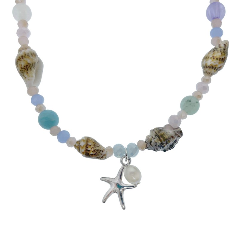 Elosee Sealife Theme Seashell Freshwater Pearl Bead Anklet