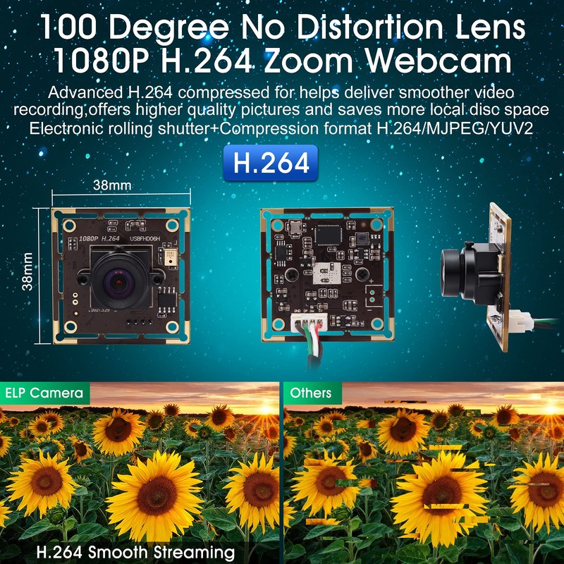 - [H.264 encoding and 0.01 lux low lighting] The USB camera module with H.264 encoding takes up less space and storage space, fast upload, 0.01 LUX low illumination makes this webcam the best choice for low light conditions.