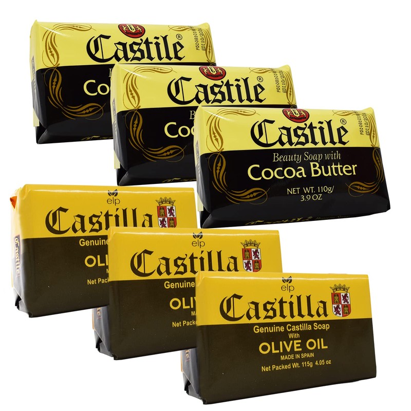 ELP ESSENTIAL Castile Soap Beauty Soap With Olive Oil and Cocoa Butter, 3.9 Ounces 6 Pack