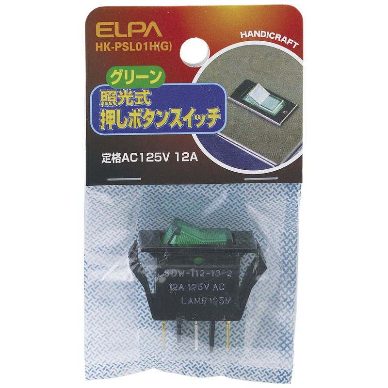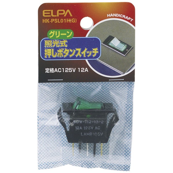 ELPA Illuminated Switch Wiring AC125V/12A Green HK-PSL01H(G)