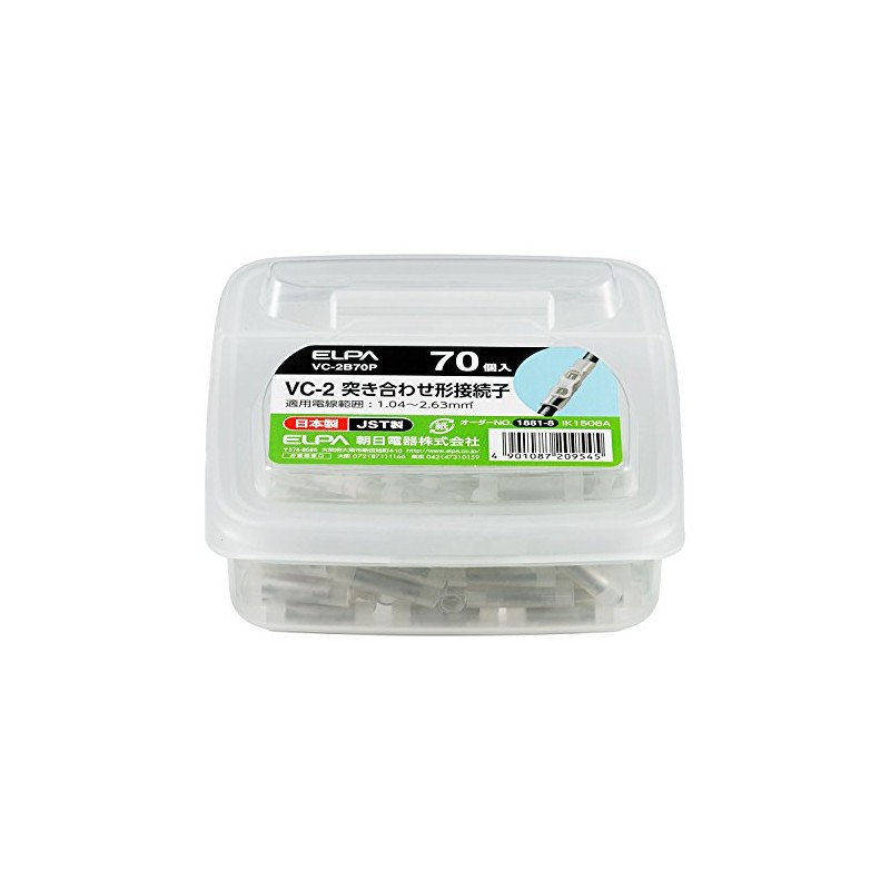 ELPA VC-2B70P Insulated Sleeves, 1.0 inches (25.0 mm), Stranded Wire 0.4 - 1.0 ft (2.63 m2), 70 Pieces, Electrical Crimping Sleeves
