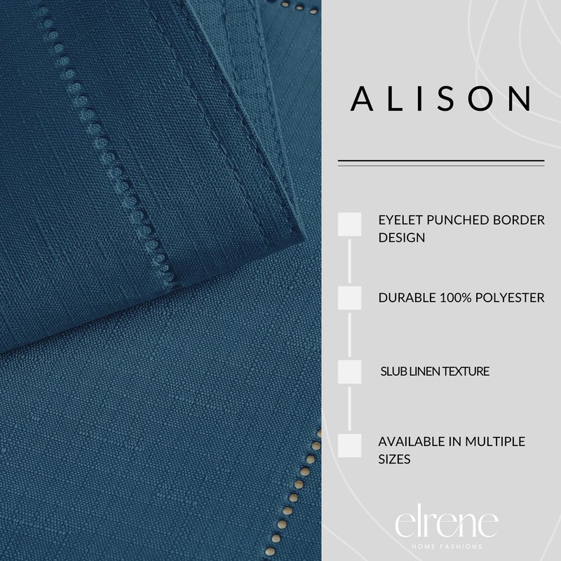 - ELEGANT EYELET PUNCHED BORDER: Our Alison eyelet punched casual tablecloth features an intricate eyelet punched openwork bordered edge reminiscent of treasured family heirlooms.