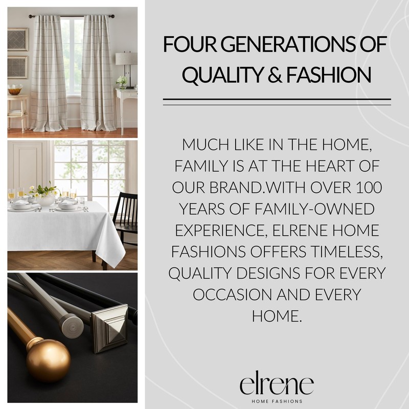 - FOUR GENERATIONS OF QUALITY & FASHION: Elrene Home Fashions has been designing and producing high-quality home decor since 1922. With our passion for design and commitment to quality, we specialize in creating products that seamlessly blend functionality with elegance.