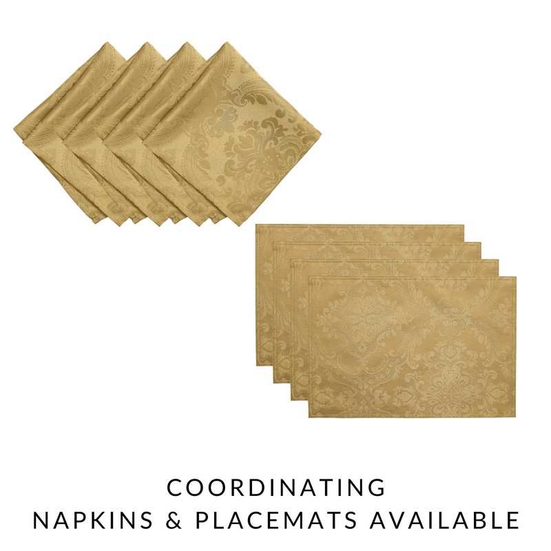 Elrene Home Fashions Caiden Elegance Damask Waterproof, Stain & Wrinkle Resistant Fabric Tablecloth, 60" x 144" Oblong/Rectangle, Gold