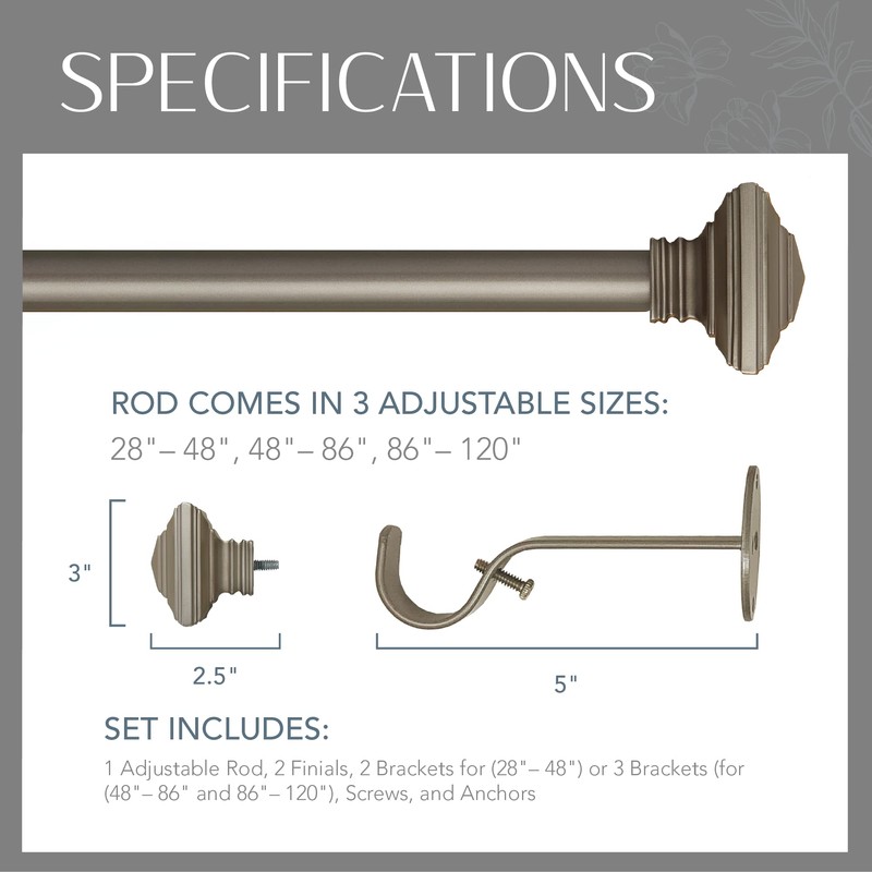 - EASY CARE & INSTALL: This curtain rod is beautiful and sturdy and comes with window-treatment hardware, including brackets, screws, and anchors. This adjustable rod is elegant and easy to wipe clean.