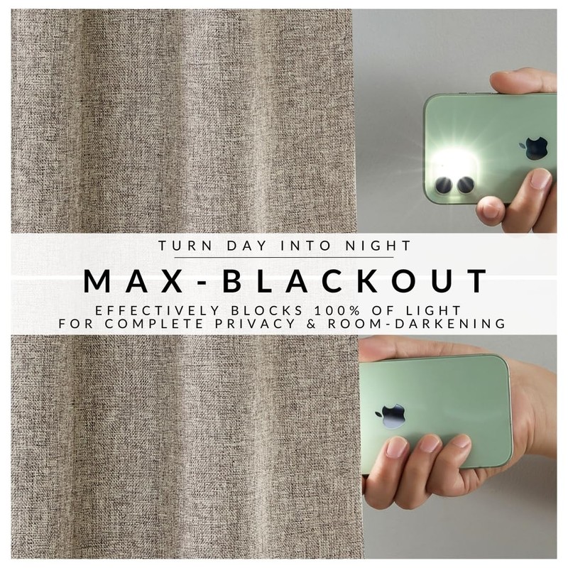 Elrene Home Fashions Solace 100% Max-Blackout Energy Efficient Solid Texture Window Curtain Panel with Rod Pocket/Back Tabs for Living Room/Bedroom/Home Office, 52"x95", Linen
