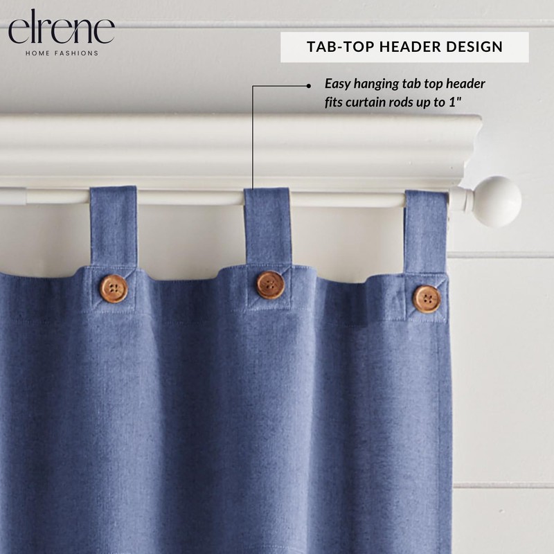 - HIGH-QUALITY HOME DECOR: Made from durable and soft 100% cotton fabric, this curtain-panel set hangs beautifully from 3-inch tabs and can fit a curtain rod up to 1" in diameter. Tab top header length is included in the provided length measurement.
