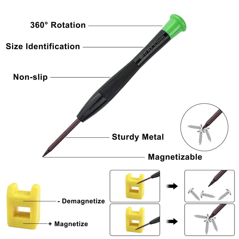 - 【Robust und Langlebig】 Der Klingenteil dieses präzisionsschraubendreher set besteht aus Metallstahl, der rostfrei und verschleißfest, robust und langlebig ist. Nach der Verwendung des Magnetisierers hat er eine magnetische Anziehungskraft, die leicht an den Schrauben haften und die Schrauben schnell einsetzen und entfernen kann.
