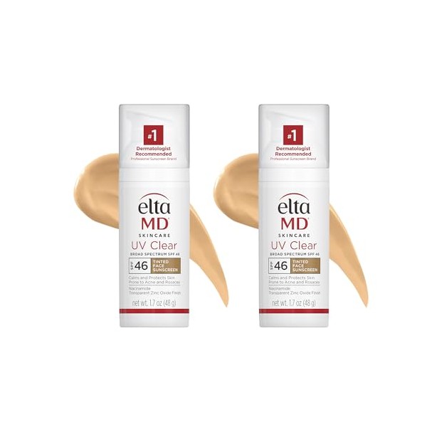 EltaMD EltaMD UV Clear Tinted Sunscreen for Face - Deep Tinted SPF 46 with Zinc Oxide, Oil-Free, Dermatologist Recommended, 1.7 oz (Pack of 2)