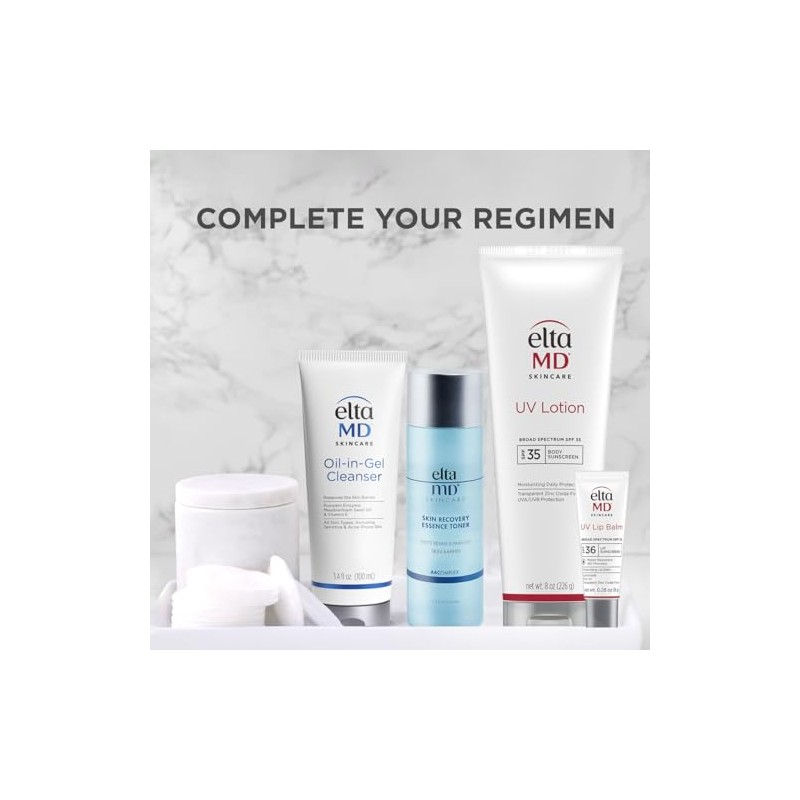Product DescriptionEltaMD UV Lotion Body Sunscreen is the ideal mineral sunscreen for body that effortlessly doubles as a body lotion with sunscreen. Designed with a nurturing blend of Zinc Oxide and Hyaluronic Acid, this sunscreen lotion caters to all skin types, including sunscreen for oily skin, with its naturally reflective formula that safeguards your skin against harmful UVA and UVB rays. The sunscreen formulation means you are protecting not just your skin but the oceans as well. This sunscreen for face is great for daily use, maintaining hydration while reducing flakiness for a smoother finish. EltaMD offers sunscreen that leaves no ashy residue and a tinted sunscreen for face that offers a hint of color, enhancing your natural tone. Our broad-spectrum SPF body lotion minimizes aging signs with its effective sun-blocking capabilities. For those seeking options, EltaMD provides beach essentials sunscreen without sacrificing sun protection. Great sunscreen for acne prone skin, it is noncomedogenic and designed to suit all skin types. The face sunscreen moisturizer and sunscreen lotion improve skin resilience, while being a sunscreen for sensitive and post-procedure skin. With water resistance for up to 40 minutes, this sun block blends sun protection with skincare effortlessly, letting you embrace outdoor activities confidently.Brand StoryEltaMD Skin Care is committed to helping you have great skin for life. Our company has developed sunscreen, skin care products and wound healing products trusted by physicians for more than 25 years.