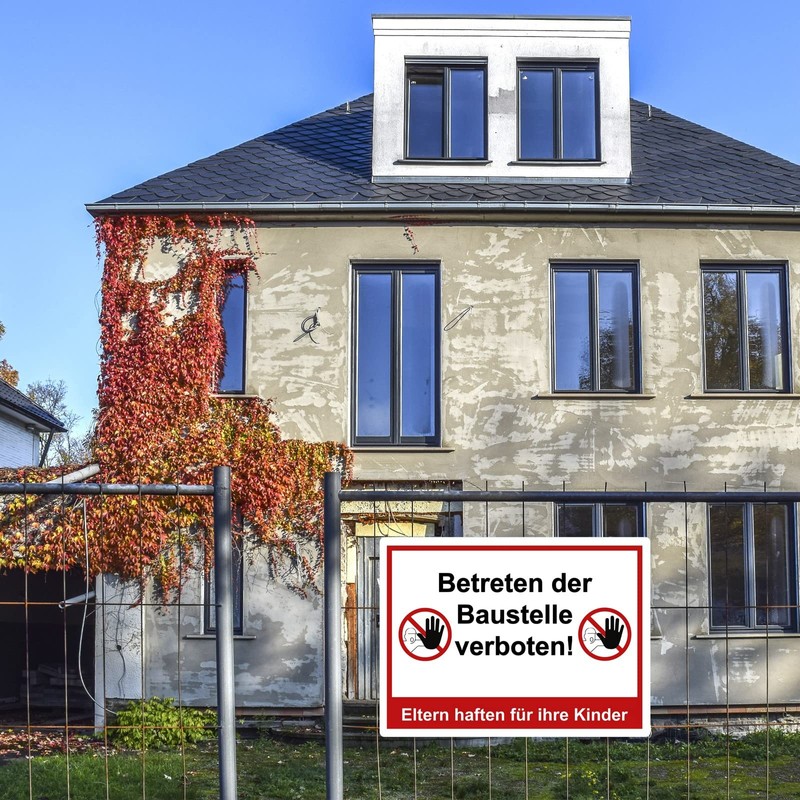 - Betreten der Baustelle verboten Sign, 20 x 30 cm, 3 mm aluminium dibond, sturdy, composite panel