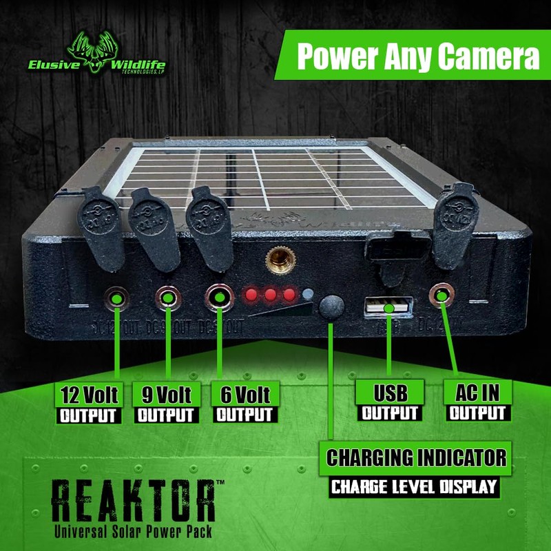 Elusive Wildlife Reaktor Universal Solar Power Pack for Security Camera, Trail Camera, Game Camera Compact Solar Panel with Rechargeable Battery & Mounting Bracket for Hunters 3 watt Panel, 12V, 6V