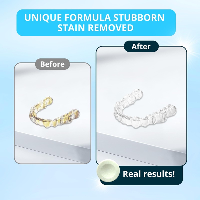 - QUICK DISSOLVE:Our cleaning tablets utilize advanced Reactive Oxygen Micromolecular Osmosis Technology, providing comprehensive cleaning and deep descaling for your retainers, dentures, or other dental appliances without causing harm.