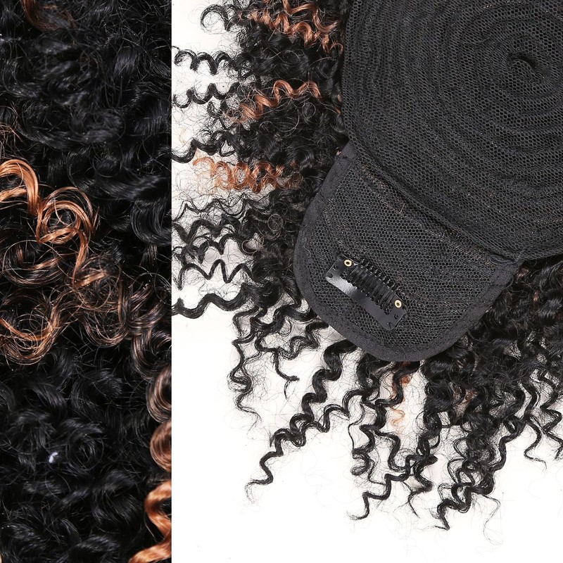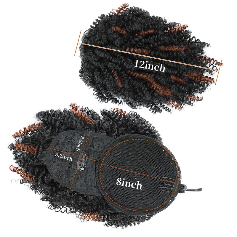 - đăPremiun MaterialăThe Afro Puff Drawsring Ponytail with Bangs Ponytail Extensions Are Made by Selected Synthetic Heat Resistant Fiber Which Imported from Japanese, It's Soft, Bouncy, Light weight, Easy to Set and Keep Curly Texture Well.