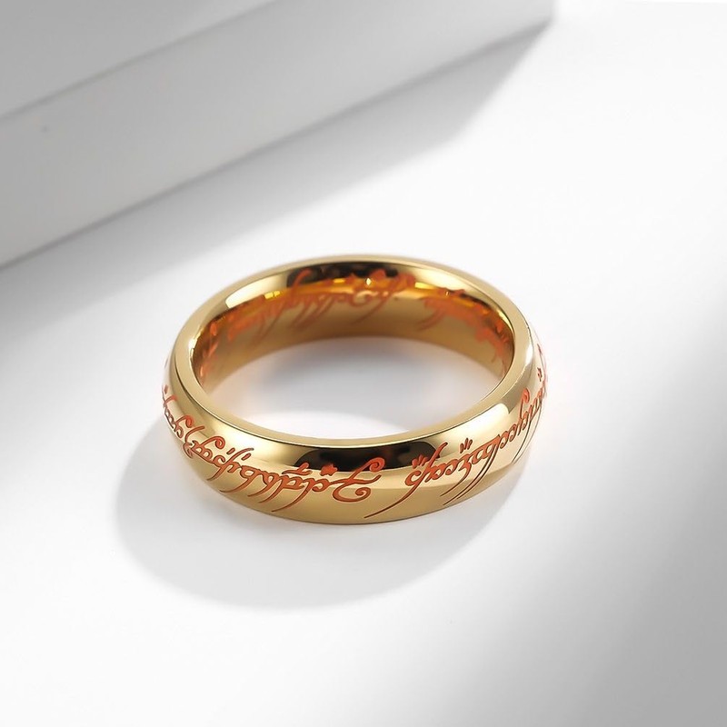 - The elf inscription on the ring means "One ring rules over them, one ring searches for them, one ring summons them all and binds them in the darkness