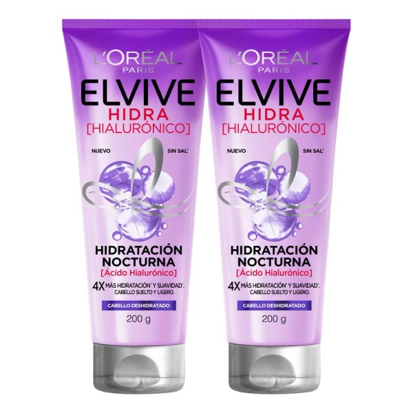 Elvive L'oréal Paris Kit 2 Tratamientos Nocturnos Elvive Hidra Hialurónico 200ml