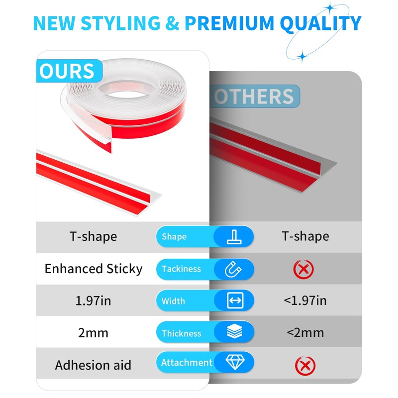 Elvone T-Shaped Door Draft Stopper, 1.97 in x 40 Ft Silicone Seal Strip for D...