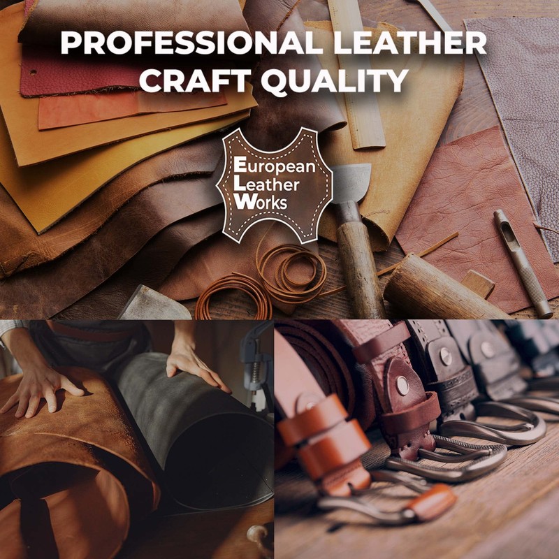 - CRAFTSMEN GRADE QUALITY: European Leather Works veg tanned leather hides are craftsman grade A/B quality genuine leather made from top-quality cowhide with a medium-firm temper and smooth top texture. Vegetable-tanned leather is a full-grain craft leather that is durable, breathability, easy to dye, and customize, offering versatility for various leathercraft projects that require leather sides for tooling and leather stamps.