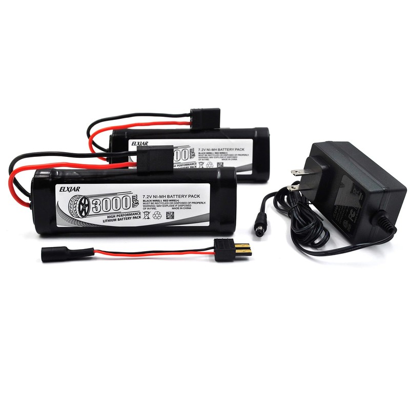 elxjarpower (2-Pack) 7.2V 3000mAh Ni-MH Battery with TRX Connector and Balance Charger Compatible with Traxxas Series 4 Battery