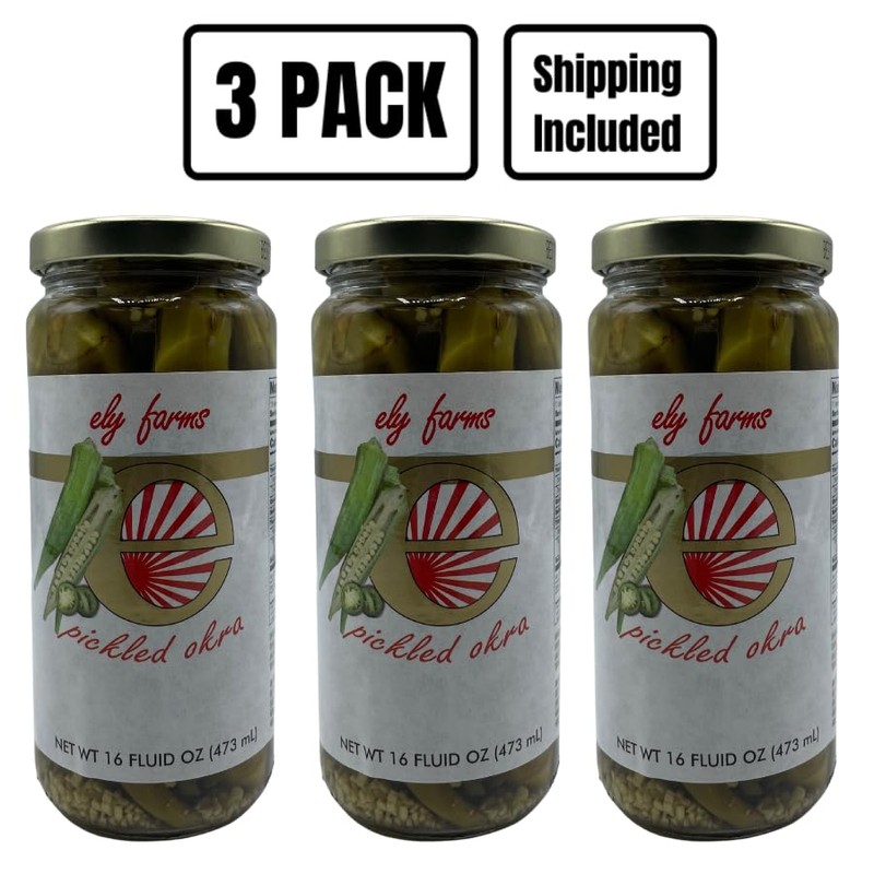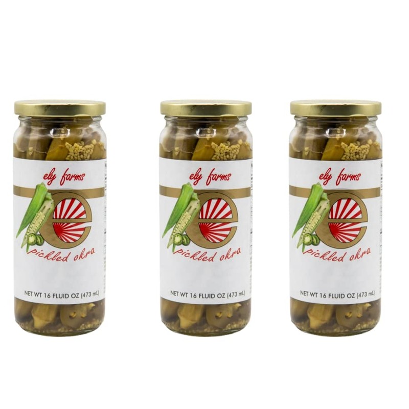 Ely Farms | Pickled Okra | Family Recipe | Zesty Dill and Garlic Flavor | Hint of Chili Pepper | Delicious Appetizer or Bloody Mary Garnish | Proudly Made in Nebraska USA | 16 oz Jar | 3-Pack