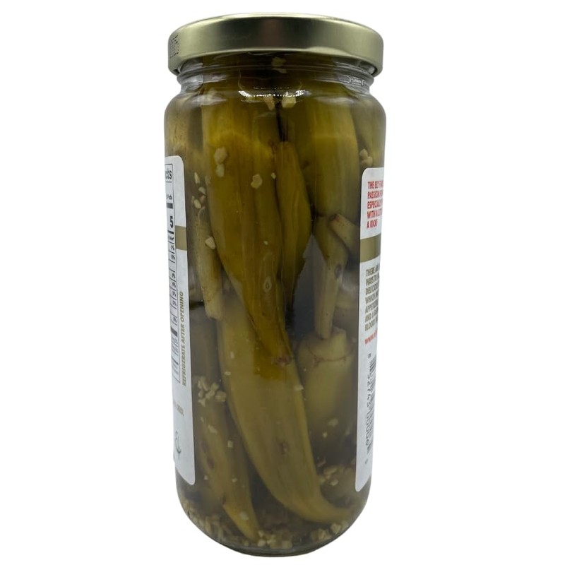 - ZESTY PICKLED OKRA - The perfect zesty dill and garlic flavor with a jalapeno pepper kick! With a hint of garlic and dill, along with a light ‘kick’ compliments of red hot chili pepper, the product flavor is just right!