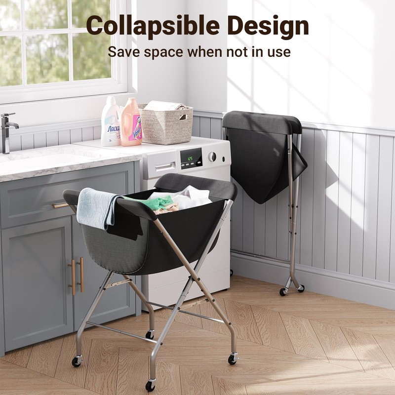 • Transfer the Laundry with ease: Measuring 33"H tall, this laundry hamper with wheels allows you to use it without bending down; the rounded stretched frame is easy to hold and push; making your laundry day with ease