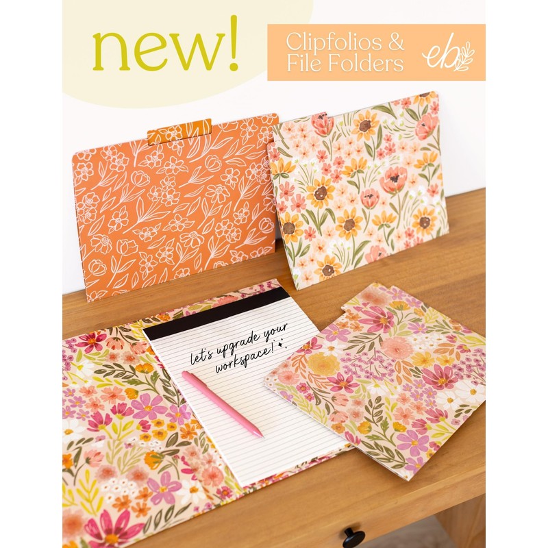 Elyse Breanne Design, Clipfolio, Portfolio and Clipboard, Includes 40 Lined Sheets Legal Pad, Built-in Pocket Folders, to Keep Organized and Professional, Summer Meadows